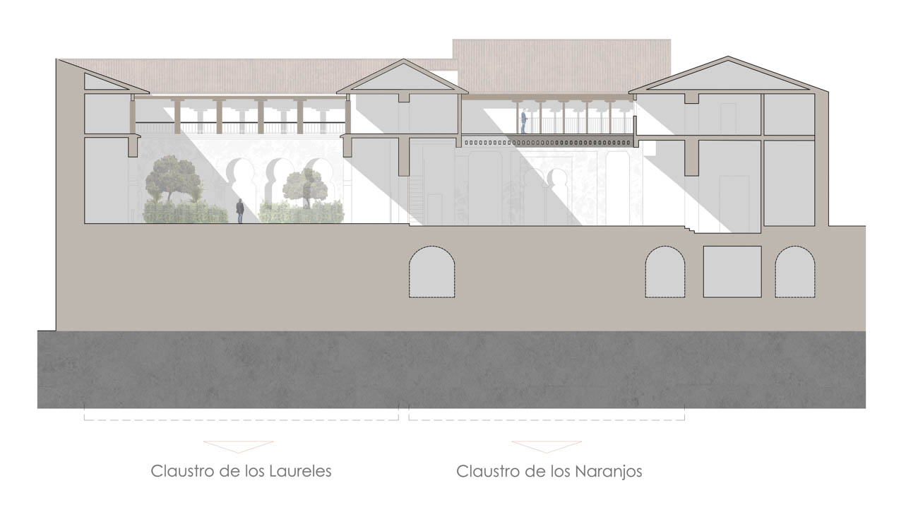 Se ha restaurado el zaguán de entrada, los claustros, el huerto, la espadaña y la azotea con máximo respeto a los restos arqueológicos encontrados, insertando gestos integradores con la contemporaneidad sin ruido escénico.